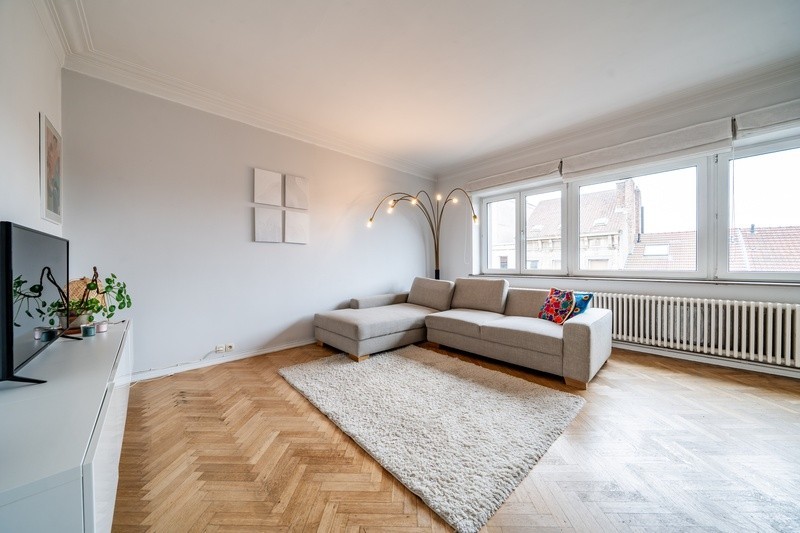 IXELLES, à proximité de la place Jourdan et les Etangs. Ce lumineux appartement rénové avec goût situé au dernier étage d'une petite copropriété se compose d'un hall d'entrée dessert un vaste Séjour de 30 m² baigné de lumière ainsi qu'une cuisine séparée de belle qualité entièrement équipée . Le hall de nuit dessert 2 chambres et une salle de bain avec toilette. PEB G. Certificat électrique non conforme. La localisation idéale et le charme de l'appartement seront vous séduire. À découvrir en exclusivité avec NEXTDOOR!