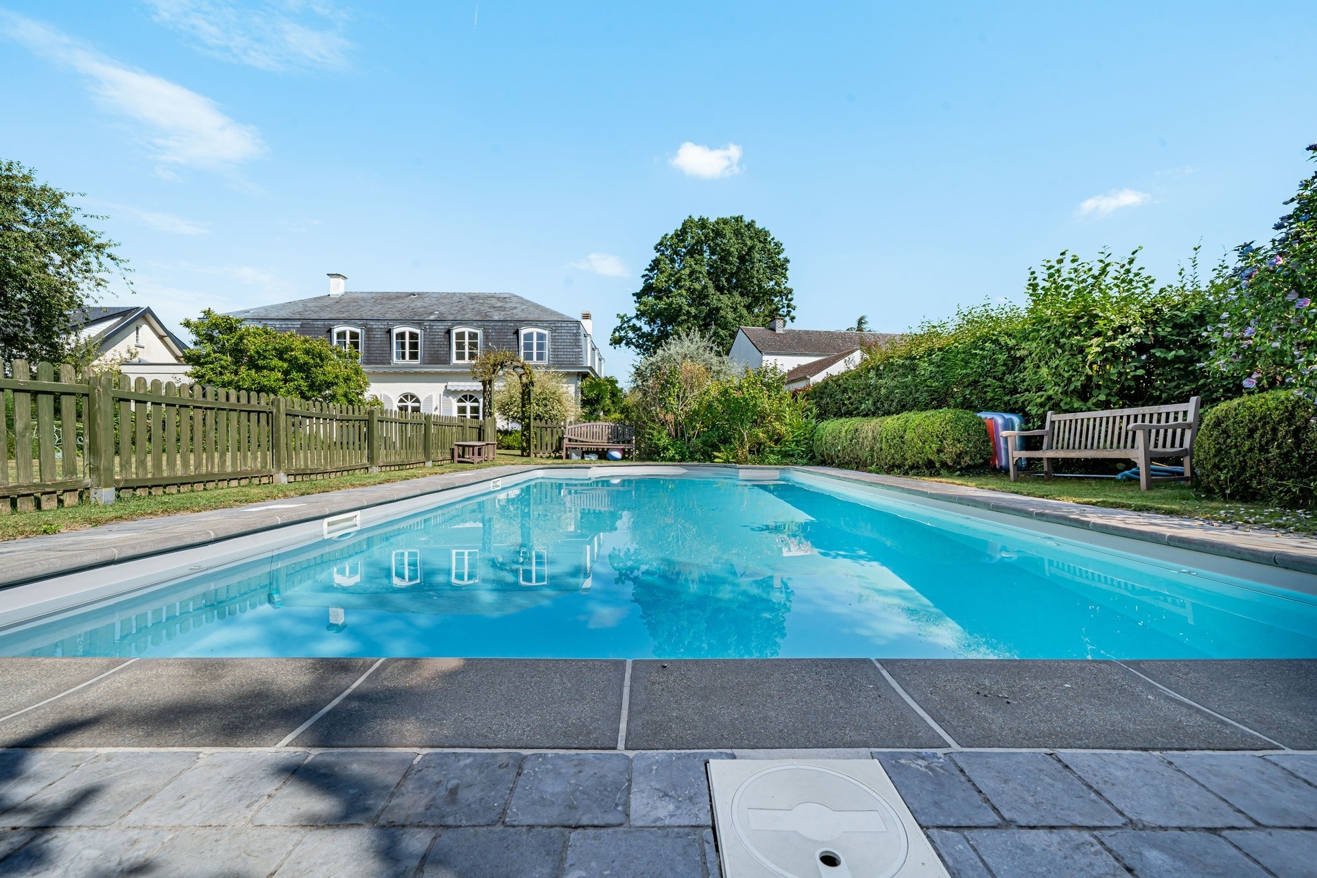 WEZEMBEEK-OPPEM - Proche du quartier Hoogvorst, VILLA 4 façades (5 CH / 3 SDB) de ±480 m² construits, érigée sur un terrain de 15 ares 94 joliment arboré, avec jardin orienté sud, située dans un quartier résidentiel verdoyant et calme, et pisicine.